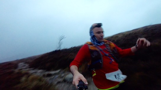 One of the great things about Keith was his wide and varied local knowledge, this meant that he was able to be accurate in his assessment of our situation, so when we approached the scramble up to the crag I knew that this was not the summit and that there were further smaller climbs to come. The scramble was actually surprisingly simple and the change of pace on the legs was welcome, I enjoy scrambling although I don’t do it very often as I am terrified of heights. So I finally reached the safety of solid ground that wasn’t going to try and kill me I was very grateful. We made good time as we crossed the high ground and started to overtake people again and other runners came past us as they picked the pace up a little. On reflection it was nice to know that we were still in a race, often at these type of events you’ll find yourself alone for hours and hours and not knowing where in the race you are, here the numbers were just right to be able to have significant time alone but also know that you could still catch someone.