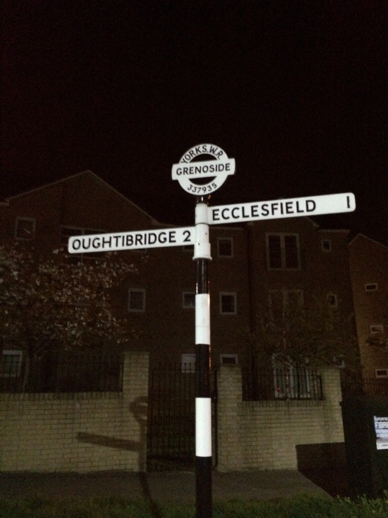 I kept about 50 metres ahead of Brian for a little while as the darkness was all consuming and I needed to focus on my own walk, but I had broken up the lack of light with my own entertainment which was belting out Elton John and Glee songs at the top of my voice, there is nothing like the sound of ‘Don’t go breaking my heart’ with hardly a soul in sight – something quite liberating. Anyway at about the 20km marker Brian finally caught me up as I was keen to take a photograph of the sign for ‘Penistone’ – how true that sometimes the ten year old inside never quite grows out of knob humour.